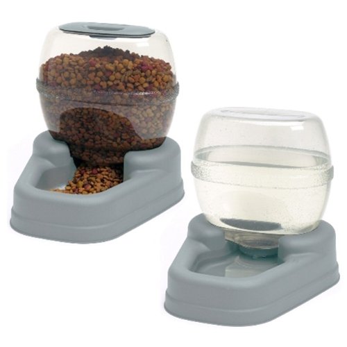 COMBO PACK! Petite Feeder and Waterer. Auto feeding and watering with flair. Meant to match your pet feeding area while bringing ease and simplicity to the whole process, the Elite and Petite feeding and watering units will keep the essentials comingeven when youre not home. For small pets, the Petite feeder automatically dispenses 6 lbs of food and the waterer dispenses 1.5 gallons. Detachable towers making cleaning a breeze.